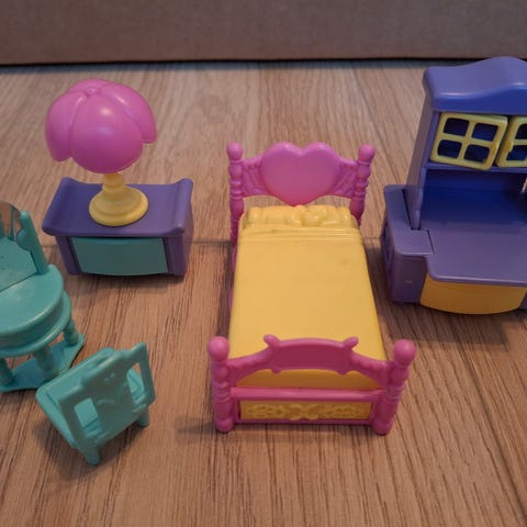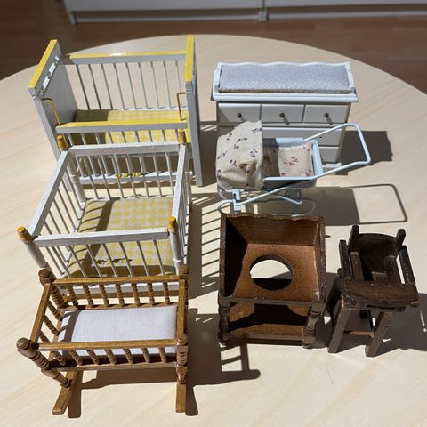 Iso määrä kalusteita ja muita tarvikkeita nukkekotiin