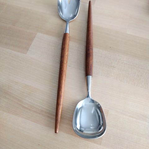60-luvulta olevat salaattiottimet. Teakpuuta varsi.
