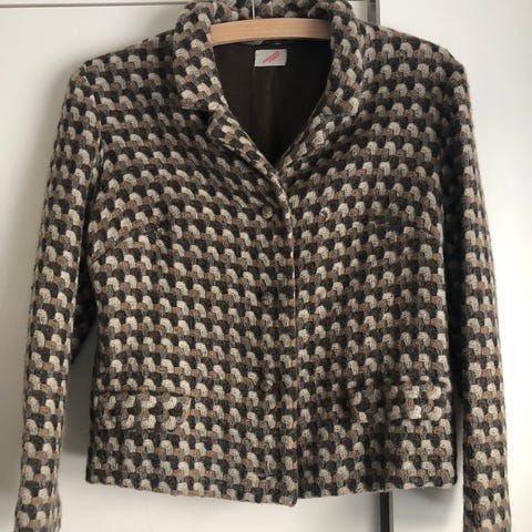Retro jakku. Edelleen hyvässä kunnossa. Sivuissa halkiot. Kokomerkintä 40, mutta on reilu koko. Käy hyvin koolle 42-44. Lappu on haalistunut, siitä ei enää näy kankaan merkintää. Lienee polyesteria. Ei Tori diiliä. Nouto ja postitus onnistuu, myös tuonti Triplaan omien menojeni mukaan