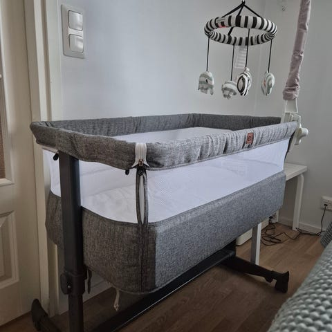 Ei pissa- tai kakkavahinkoja, hajusteeton ja eläimetön koti. Sivuvaunusängyn voi sitoa vanhempien sänkyyn mukaantulevilla nauhoilla.