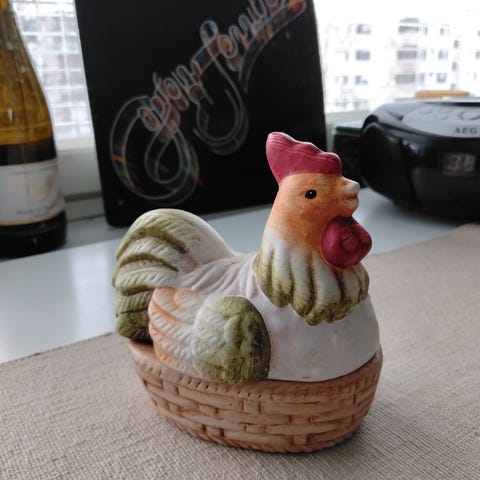 Avattava kukko, savea.