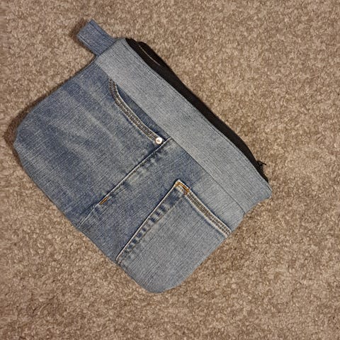 Kova, keinonahkainen meikki- tms. Laukku. Leveys 21 cm, korkeus 15 cm ja syvyys 16 cm.