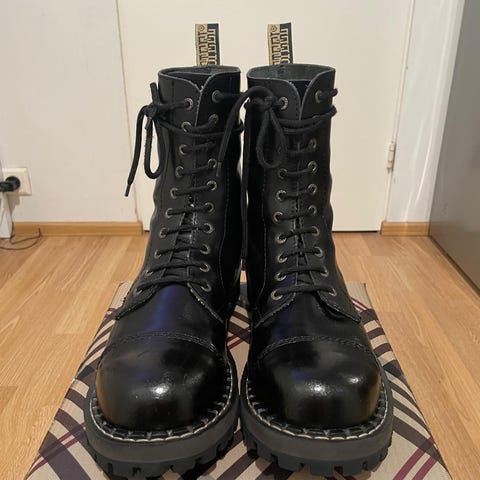 Tästä elvyttämällä kovassa ajossa olleet teräskärkibootsit. Kehtaa sitten taas potkia mummoja.