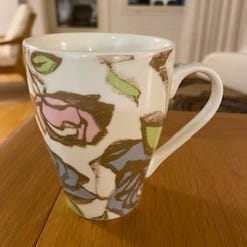 Kauniit Rose kahvikupit asetteineen ja kerrostarjotin