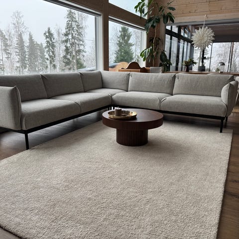 2022 ostettu kulmasohva. Hyvässä kunnossa, pieni reikä toisessa käsinojassa mitä ei juuri näe. Selkänojissa iroitettavat päälliset. Mitat 238cm x 238cm