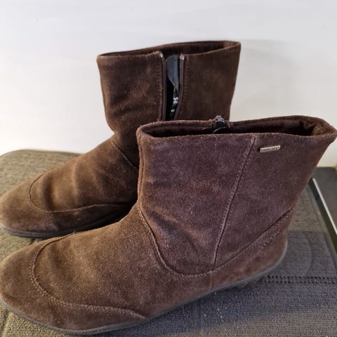 Laadukkaat Legero - merkkiset naisten musta-harmaat goretex talvinilkkurit. Koko 7,5 vastaten kokoa 41. G-lesti. Materiaalina mokkanahka ja nahka. Käsitelty suojasuihkeella. Lämmin vuori ja pehmeä, pitävä pohja. Irrotettavat pohjalliset. Hyvin mukavat jalassa. Käytetty vain muutaman kerran, ovat erittäin siistit ja hyvässä kunnossa. Hinta 60 €. (Ovh 170 €).