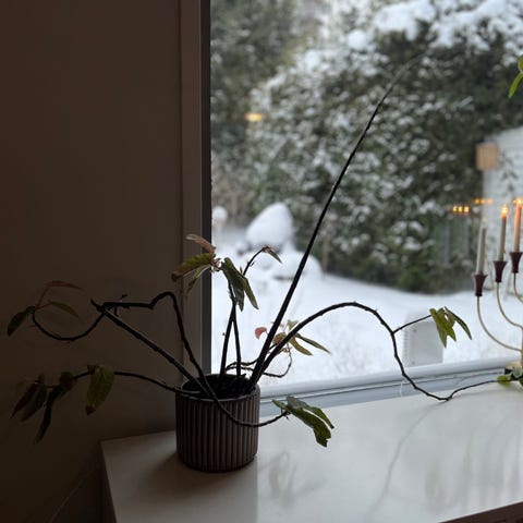 Myydään itse juurrutettu enkelinsiipi ja musta ruukku.