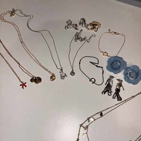 Mysteerikorupurkki (käsikoruja, korvakoruja, kaulakoruja).