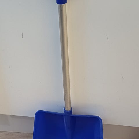 Vähäistä käytön jälkeä, varren pituus 95 cm, lapion leveys 26, ja pituus 32 cm, pieni kevyt lapio.