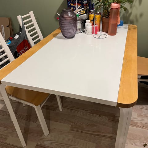 Hyvässä kunnossa oleva kahden ihmisen ruokapöytä ja tuolit mukaan.
