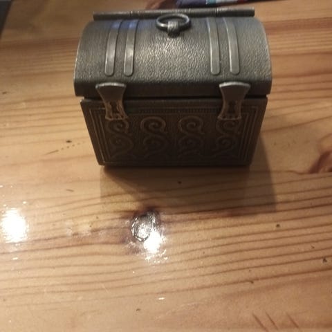 Myydään hurmaava puinen 1940-luvun korurasia. Leveys 15cm, syvyys 11cm.