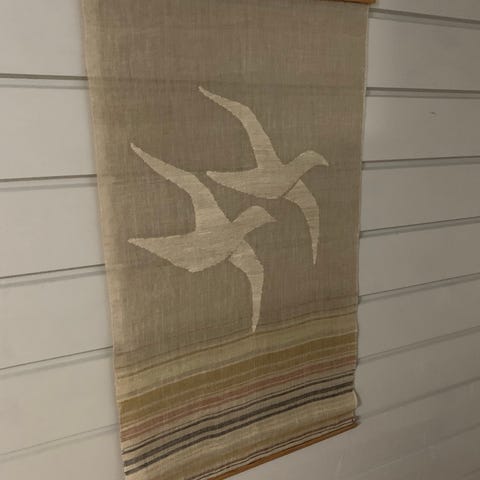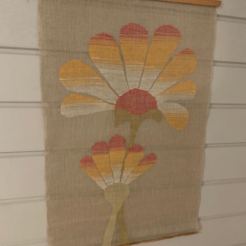 Erittäin hyväkuntoinen juuttikankaalle kirjailtu taulu. Ei reikiä eikä rispaantumia.