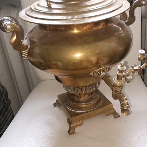 Harvinaisempi Venäjän Tulan Tähtitehtaan (1938-1941) messinkinen hiilisamovaari.