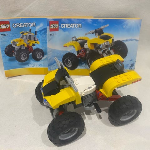 Hyllyssä seisonut Lego Turbo Track Racer toimivilla lokinsiipiovilla. Ohjekirja mukaan.