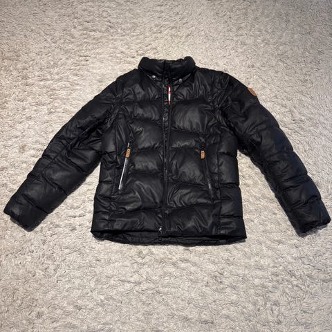 Hihoissa pientä tummentumaa, mikä huomioitu hinnassa. Ehjä ja siisti takki vielä seuraavalle. Kaikki vetskarit toimii.