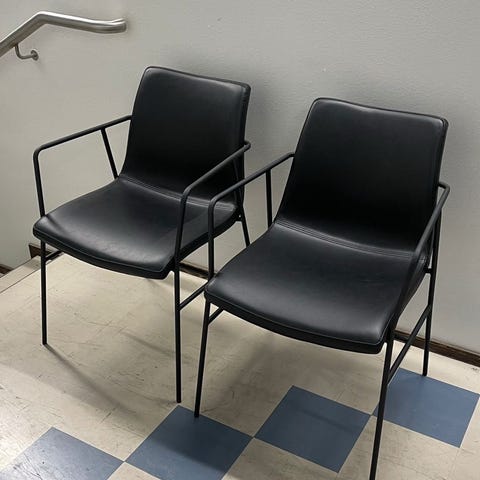 Hyväkuntoinen tuoli. Ollut työpyödän tuolina ja hyvin vähällä käytöllä. Pientä tummentumaa keinonahka verhoilun etualalla ja jaloissa pieniä maalin lohkeamia. Muuten hyvä kunto.