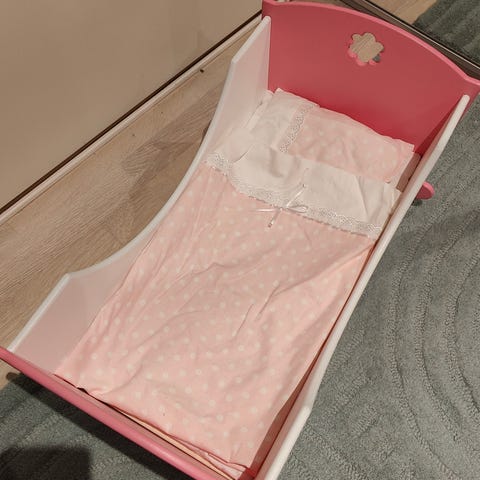Puinen vankkarakenteinen painava nuken kehto. Pohja vahvaa vaneria.