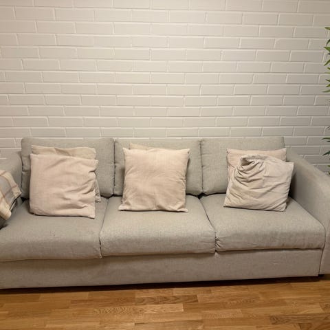 Erittäin kaunis Beige sohva, mahtuu yksi aikuinen helposti nukkumaankin.