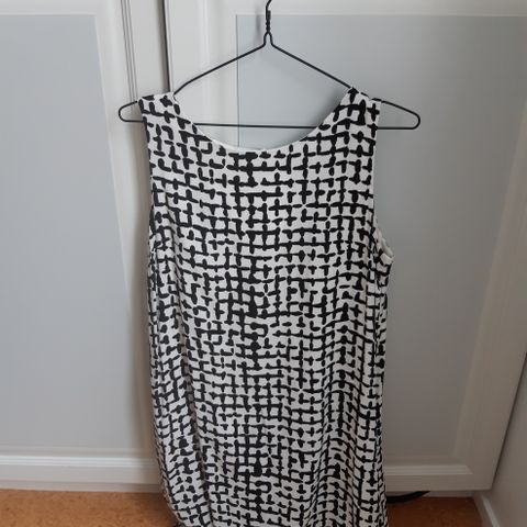 Marimekon Truba-Ruusupuu juhlamekko, koko 44. Väriltään valko-musta-vaaleanpunainen. Mekko on valmistettu puuvillasta. Hyvässä kunnossa, vain vähän käytetty (Pesun jälkeen ei ole silitetty).