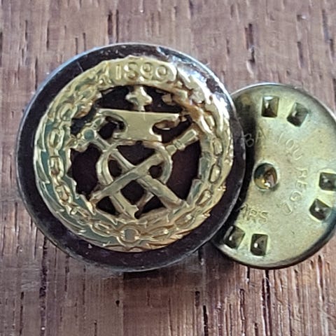 Siistikuntoinen emaloitu hopeinen neulamerkki. Valmistaja Sporrong, 925 hopeaa, X8 = 1999. Numeroitu: 860.