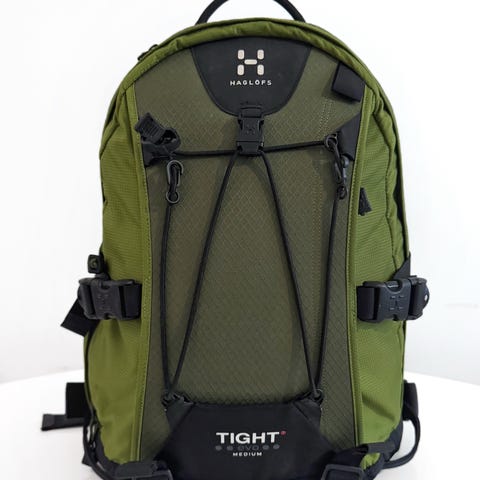 Uusi, musta reppu, tilavuus 22l, muotoiltu selkäpaneeli ja joustavat verkkosivutaskut