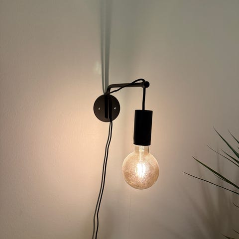 Seinävalaisin, pituus suorana 57 cm, kuvun halkaisija 10 cm. Kiinnitetään seinään kahdella ruuvilla, ruuvit ei mukana. Max 40 w, E14.