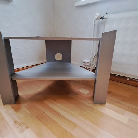 Olohuoneen pöytä, ehjä mutta käytön jälkiä. Mukana kahvat sivuihin ja sisäpuolelle ketjut kannen ja pöydän väliin.
