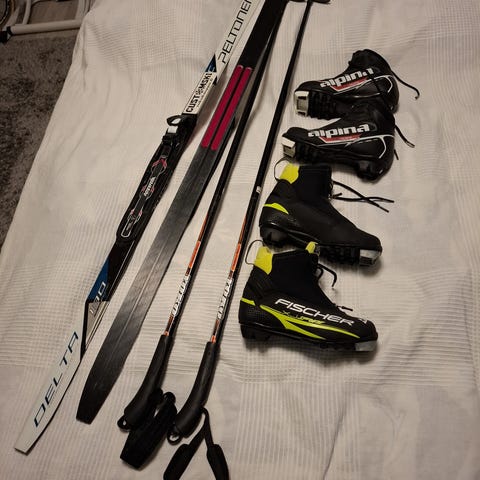 Perinteisen tyylin pitokarvasuksisetti 130cm NNN-siteellä ja 2 monot 33 ja 32