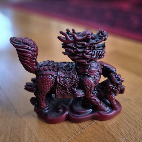 Vihertävä kirjojen päällä makaava lohikäärmefiguuri (koriste-esine / keräilytuote).