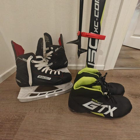 Hyvä perinteisen paketti 203cm,sauvat 160cm,monot 43.50e. luistelusukset 190cm,monot 43.40e. Vanhapaketti 25e.