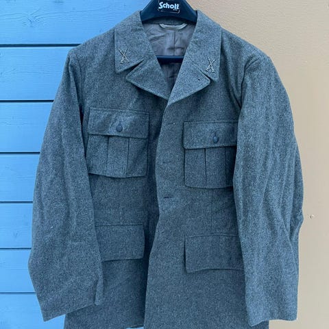 Ruotsin armeijan sarkatakki toisen maailmansodan ajoilta. Tunnettu erinomaisesta laadustaan ja paksusta, korkealaatuisesta villakankaasta. Leima vuodelta 1945. Kokomerkintä 100 eli M/39. Pituus 78 cm.