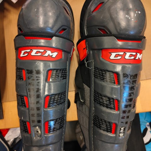 CCM polvisuojat 16 tuuman koossa. Kokosuositus 185-190 cm. Normaalia kulumaa, mutta vielä hyvässä käyttökunnossa. Suojat eivät haise, pehmusteet saa irroitettua pesua varten.