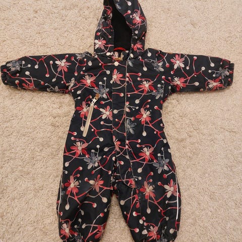Reimatec talvihaalari / toppahaalari kokoa 80. Tämä mielestäni paksumman ja kevyttopan väliltä. Kunto todella hyvä, ei rikkeymää, vain hyvin vähäistä kulumaa hihansuissa ja vähän polvissa. Jalkarenksut ehjät.