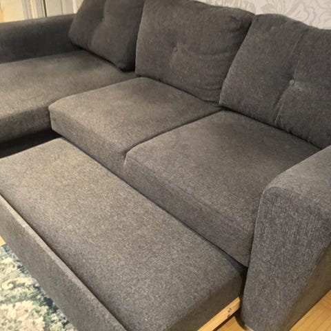 Sohvan saa kahteen osaan kuljetusta varten suht kätevästi.