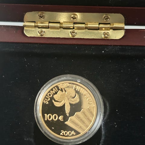 Suomen Rahapaja 1000 markan juhlaraha vuosilta 1917-1992. Kultainen juhlaraha on painettu Suomen itsenäisyyden 75-vuotisjuhlan kunniaksi. Kolikko on valmistettu kullasta ja sen paino on noin 9 grammaa. Mukana on alkuperäinen takuutodistus ja suojakotelo.