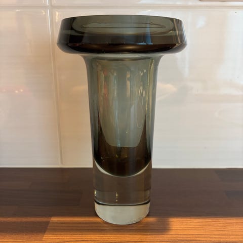 Kaj Franck maljakko, Nuutajärven Lasi. Verholasi,hiottu,sininen. Korkeus 16 cm. Signeerattu. Käyttämätön!