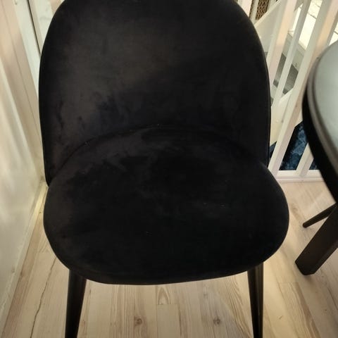 Muuton tieltä myyntiin musta ruokapöytä ja 4 keinonahkatuolia. Yhden tuolin selkänojassa pieni repeämä, se peitetty mustalla teipillä ( kuva )