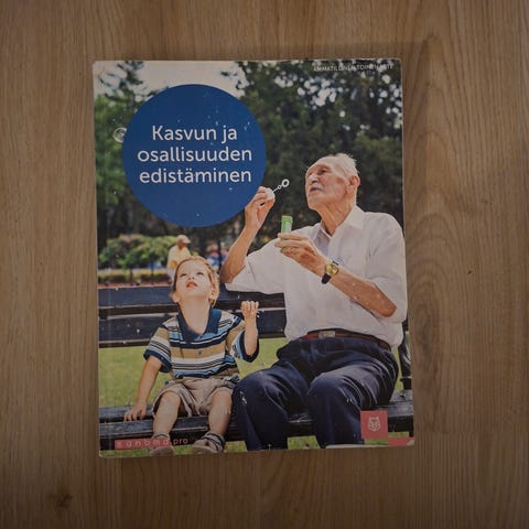Teos hyvässä kunnossa, kontaktimuovilla päällystetty. Etusivulla kuulakärkikynällä nimeni ja vuosiluku. Ei alleviivauksia.