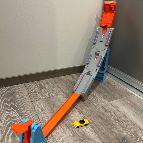 Hyväkuntoinen käytetty Hot Wheels- autorata ja radan mukana tullut auto.