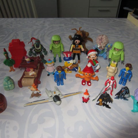 Erittäin siistikuntoiset keräilyhahmot, sekalaista merkkiä.