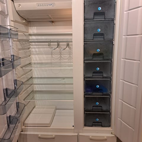 Iso 2:lla liukuovella varustettu käytetty Helkama C10 kylmäkaappi. Mitat: korkeus 2062 leveys 1195 ha syvyys 710 mm. Puhdistettu ja huollettu. Lämpötila +4 - +10 C. Sisään mahtuu 1350 kpl 0,33 l tölkkejä. Kyljet teipattu eri teipeillä yksilöstä riippuen.
