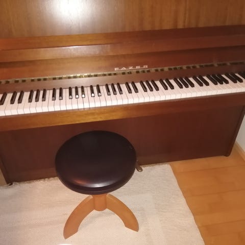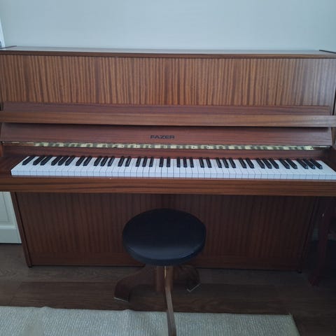 Fazer pystymallinen piano, valmistettu puusta. Sopii musiikin harjoitteluun ja esityksiin sisätiloissa. Leveys 144 cm korkeus 108 cm syvyys 52 cm. Pulla kahvit kaupanpäälle:) Lounaskahvila Katariinassa.