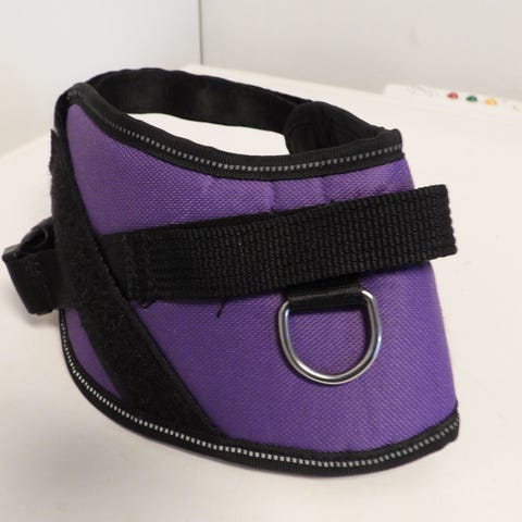 Koiran valjaat, väri violetti ja musta. Valjaissa on leveä rintaremmi ja säädettävä hihna, joissa tarrakiinnitys ja solki. Selkäosassa on metallinen D-rengas talutushihnan kiinnittämistä varten. Reunoissa on heijastinnauhaa näkyvyyden parantamiseksi. Sopii koiralle, jonka koko vastaa kuvissa näkyviä valjaita. KOKO XS