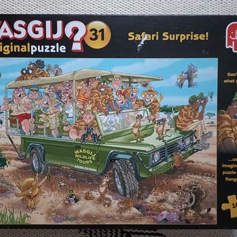 Wasgij? Mystery Puzzle 17: Catching A Break! Palapeli, jossa 1000 palaa. Kaikki palat tallessa. Palapelissä mukana outo haju ja laatikon yksi kulma paikattu.