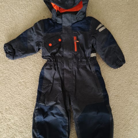Lämmin tyttöjen talvipuku. Ehjä. Pientä käytön jälkeä mm polvissa kuten kuvasta näkyy. Hyvinkin käyttökelpoinen vielä.