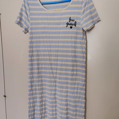 Mukava puuvilla vaaleansininen kukkakuvioinen yömekko, siisti ja hyväkuntoinen.