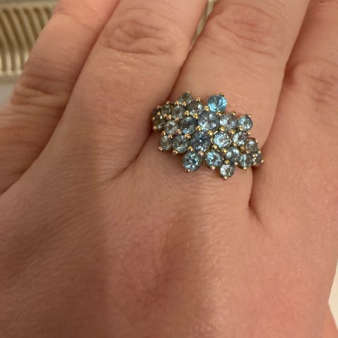 9karaatin topaasisormus pinkeillä kivillä. Koko 18,5mm.