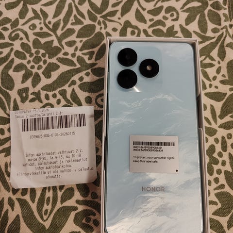 Siisti, toimiva honor 8. Vanha on mut menee esim lapsella. Isommalla 64gb muistilla. Puhelimen takalasi läpinäkyvä. Tehty tarkoituksella. Lompakkokuori mukaan.