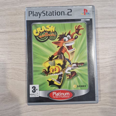 Crash Bandicoot Playstation 2 peli. Paketti sisältää kolme peliä, jotka ovat yhteensopivia Playstation 2 -pelikonsolin kanssa. Pelit ovat fyysisiä levyjä alkuperäisissä koteloissa.