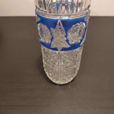 Kristallimaljakko, vihreä koristenauha. Kunnossa, korkeus 21 cm